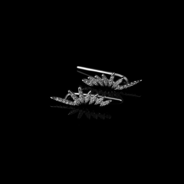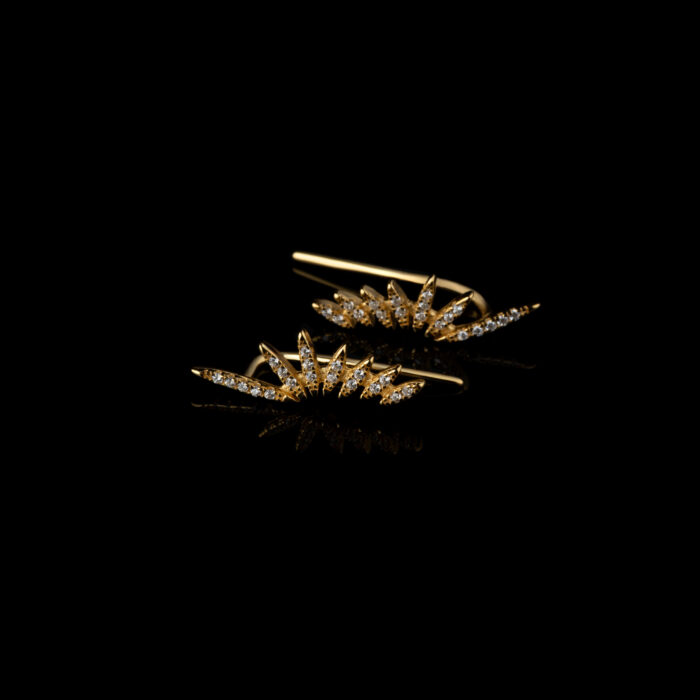Luxusné náušnice typu climber s dizajnom slnečných lúčov, zdobené žiarivými čírymi zirkónmi. Elegantný šperk, ktorý sa jemne tiahne po línii ucha a dodá vášmu outfitu oslnivý a moderný vzhľad. Ideálne na špeciálne príležitosti aj každodenné nosenie.