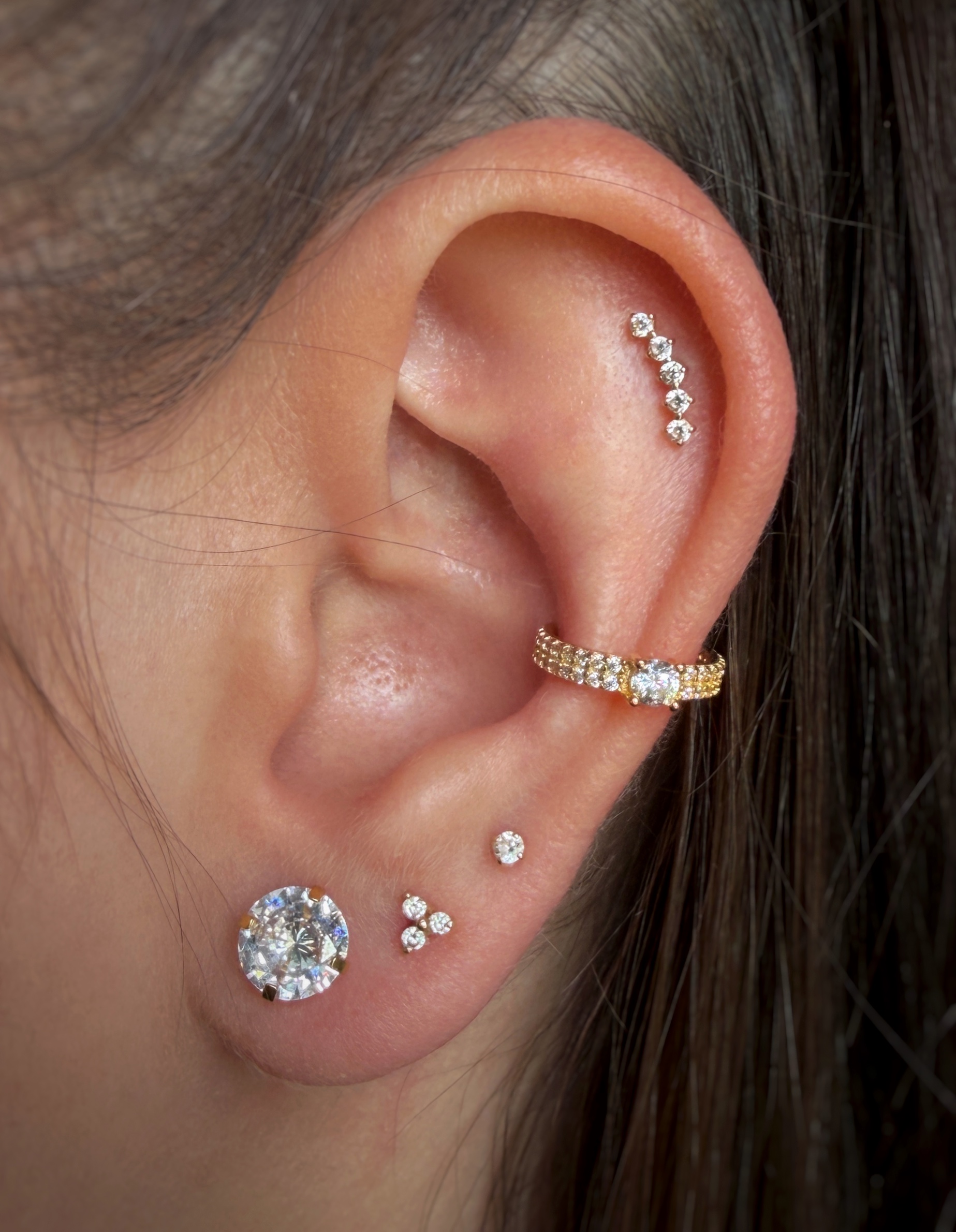 Tento dizajn je vyrobený z masívneho 14K zlata a z vonkajšej strany je osadený dvoma radmi ultra lesklého zirkónu. Luxusný 14 karátový krúžok zo žltého zlata. Vhodné do Lobe, Helix a Conch. Táto obruč, navrhnutá s ohľadom na pohodlie a jednoduché použitie, je vyrobená s naším exkluzívnym klikacím mechanizmom, vďaka ktorému je vkladanie a vyberanie veľmi jednoduché.
